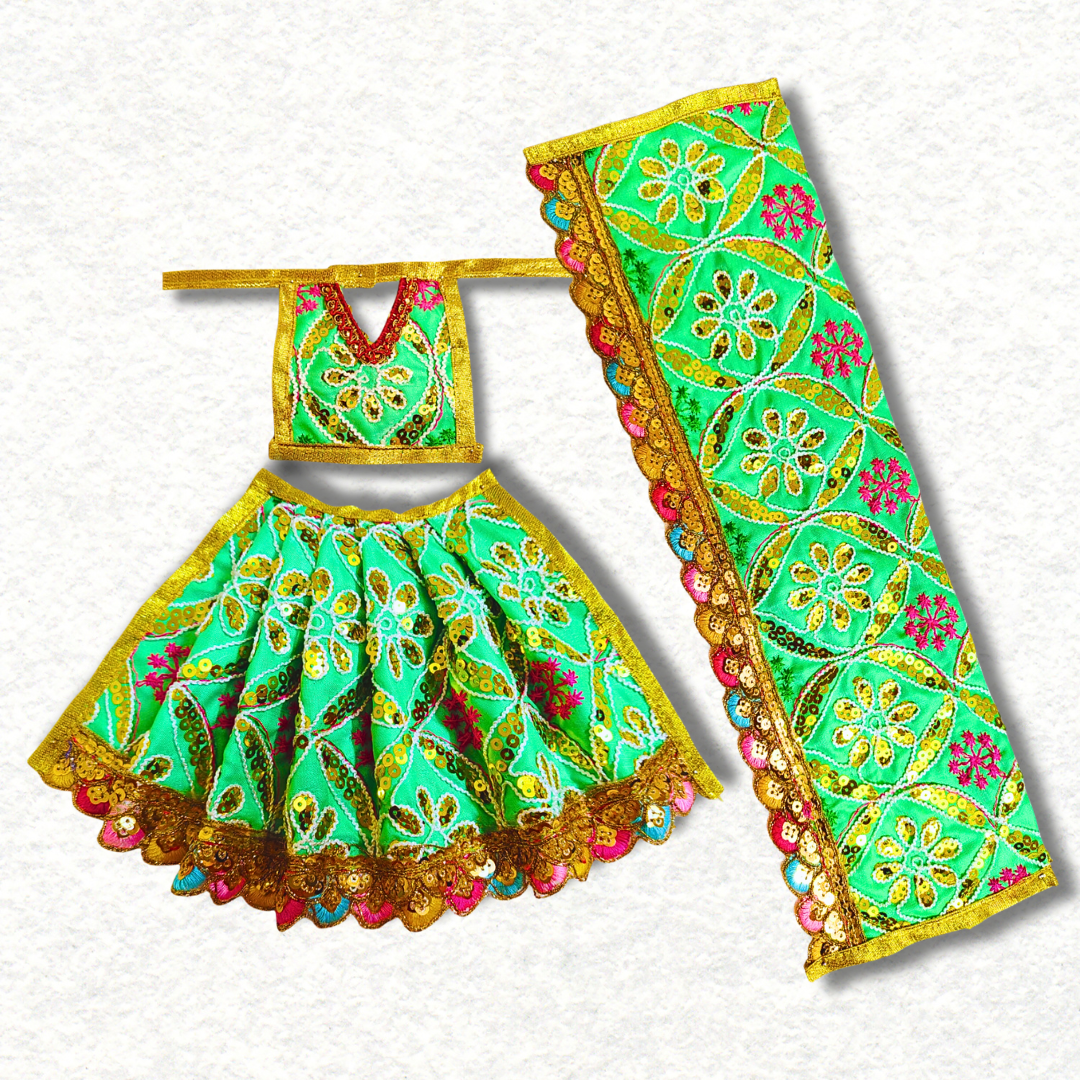 Mata Rani single dress with choli in firozi colour.